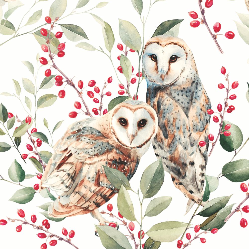 NEW! Barn Owl Couple, white • Lunch Napkins